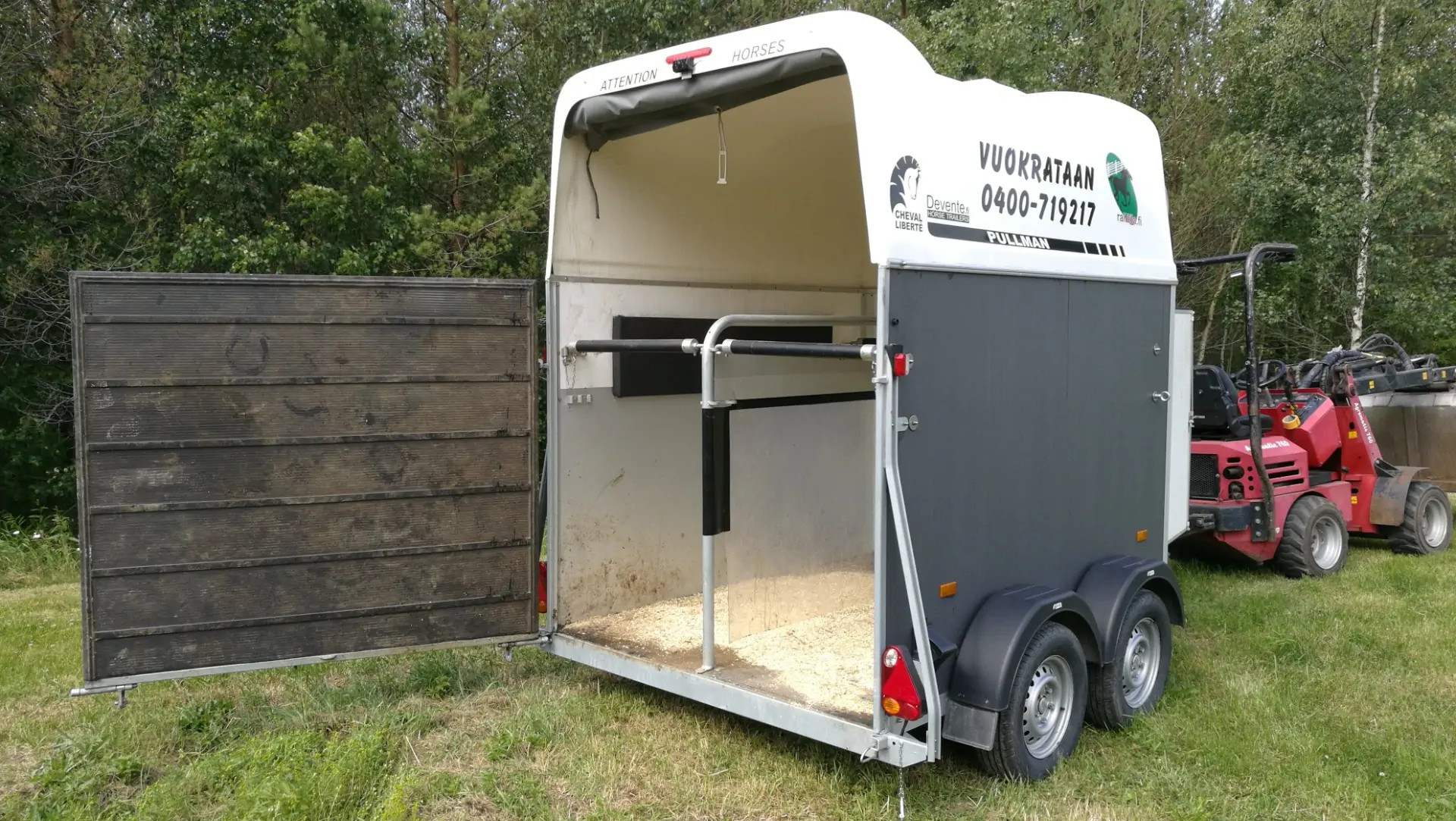 Tarjoamme vuokralle Cheval Liberté hevostrailerin, joka tekee hevosen kuljetuksesta turvallista ja helppoa. Trailerissa on useita käytännöllisiä ominaisuuksia: